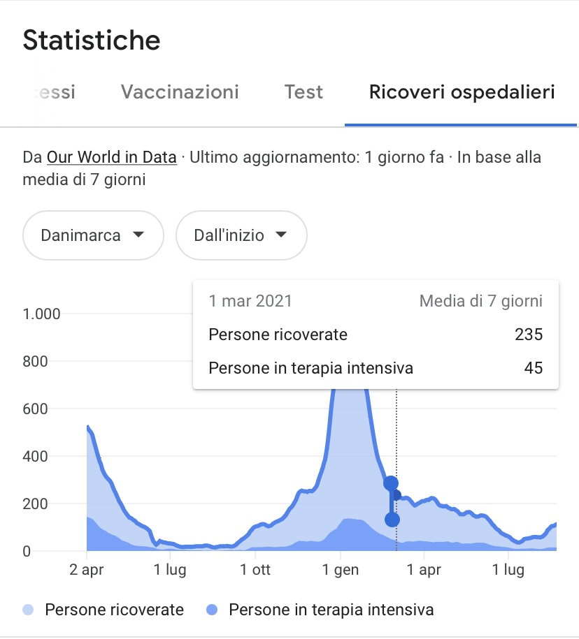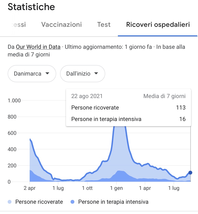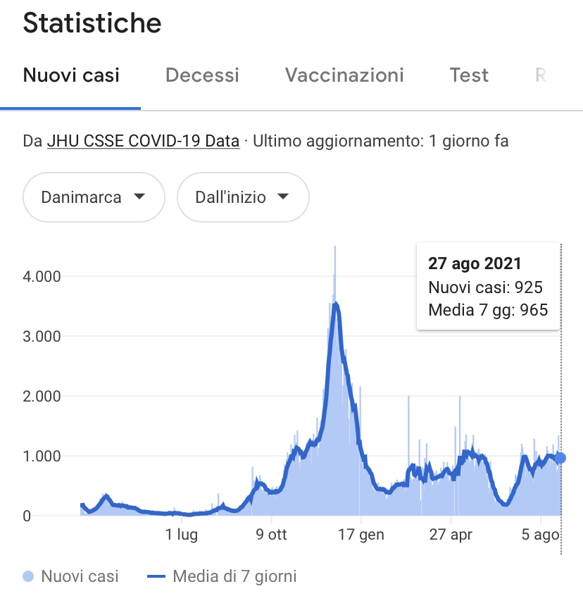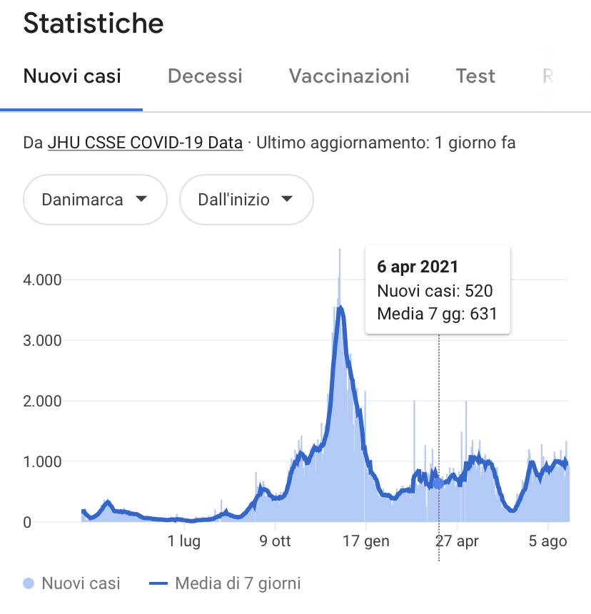 La decisione presa in Danimarca è stata possibile perché, come ha specificato il ministero della salute Magnus Heunicke, il Covid «Non è più una minaccia critica per la società» pur sottolineando che «la pandemia non è giunta al termine e che dunque, se la situazione dovesse peggiorare ancora trasformandosi nuovamente in una vera minaccia per la società, allora il Governo agirà rapidamente per contrastare, ancora una volta, il diffondersi del virus». Il fatto che il Covid sia ora sotto controllo, specifica il ministro, è merito dei «Livelli di vaccinazione record». Questa la lettura ufficiale, anche se seguendo di dati ufficiali raccolti, si nota che la reale differenza di nuovi casi, anche dopo l’acclamato successo della campagna vaccinale, non è effettivamente così ampia: i decessi rimangono stabili e molto bassi da marzo 2021, momento in cui i vaccinati con doppia dose erano appena il 3 per cento. Mentre i casi di contagio sono anzi aumentati, attestandosi a livelli doppi rispetto all’inizio della campagna vaccinale e di dieci volte superiori rispetto alla fine di agosto 2020. Ad essersi invece più che dimezzato è il tasso di ricoveri in terapia intensiva. Di seguito alcune statistiche, considerando che il 6 aprile 2021 la Danimarca fu la prima nazione europea a introdurre il pass sanitario.
