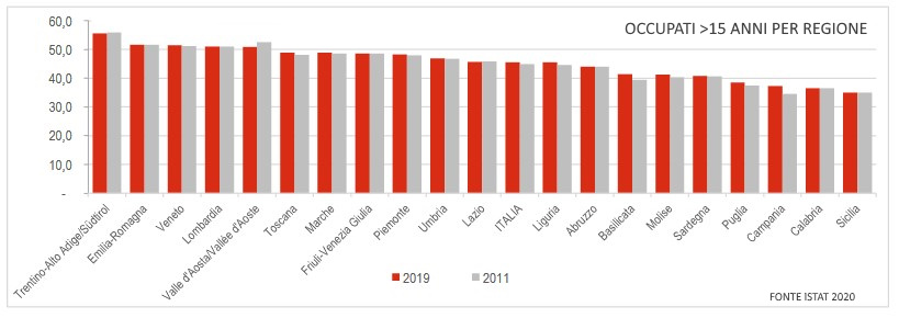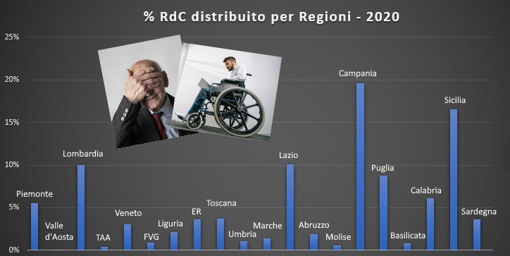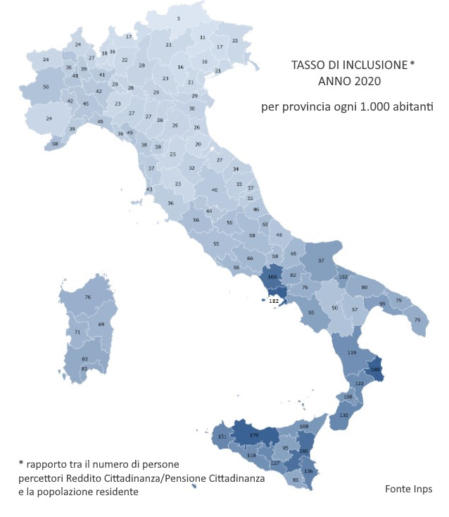 Inutile aggiungere che i dati vanno sempre interpretati e comparati in modo critico. Di per sé sono muti. Per farli “parlare”, costringerli a dire di più, a confessare ciò che non appare nell’immediato, occorre fare qualche sforzo. In un caso come questo del Reddito di Cittadinanza è scontato che dobbiamo compararli ai dati dell’occupazione, se partiamo dal principio che stiamo tentando di lenire i problemi della povertà economica per mancanza di lavoro e quindi di reddito. Noi italiani sappiamo – per costituzione – che le regioni del Sud sono più povere di quelle del Nord e soffrono più di altre della disoccupazione di breve e lungo termine. In effetti la fotografia che l’Istat ci restituisce riguardo gli occupati dai 15 anni in su, per regione, ce le elenca inesorabilmente da anni: sotto la media italiana ci sono la Liguria, l’Abruzzo, la Basilicata, il Molise, la Sardegna, la Puglia, la Campania, la Calabria e la Sicilia. Niente di sorprendente.