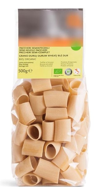 Paccheri Bio a lenta essiccazione di 36 ore sotto i 60°C di temperatura: