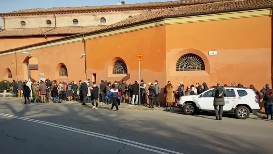 I cittadini in fila per sporgere denuncia contro il governo presso la caserma dei Carabinieri di Bologna