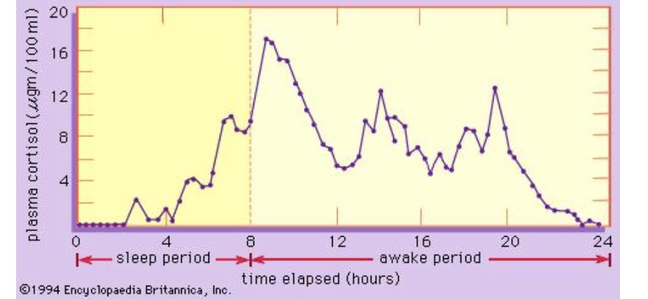 Fonte: Enciclopedia Britannica, Andamento giornaliero dei picchi dell’ormone cortisolo