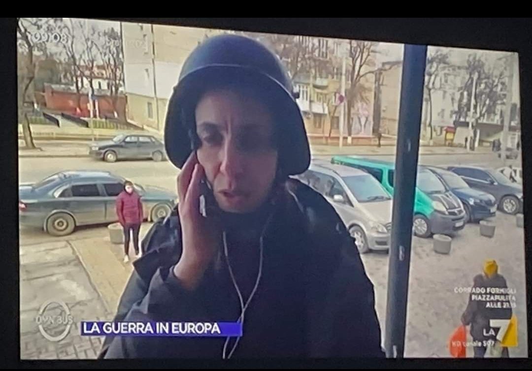Ma a rendere tragica la cronaca dei fatti ucraini da parte del mainstream italiano non vi sono solo le bufale e le immagini non verificate, ma anche un certo gusto per il sensazionalismo degli inviati. Un atteggiamento che potrebbe essere considerato meno grave, ma che certamente non aiuta a migliorare la fiducia dei cittadini nell’informazione. È il caso andato in onda a La7, con l’inviata in Ucraina Francesca Mannocchi ripresa con l’elmetto in testa mentre parla con il tono concitato di chi si trova sotto le bombe, mentre a pochi metri da lei tranquille signore passeggiano con le buste dalla spesa in mano.