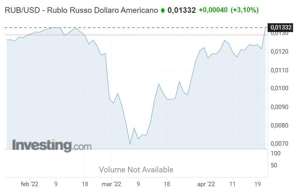 Nonostante la dura politica di sanzioni messa in atto dai Paesi europei e dagli Stati Uniti nei confronti di Mosca, a seguito dell’operazione militare condotta in Ucraina, non solo l’economia russa ha resistito al colpo finanziario sferrato dall’Occidente, ma la sua moneta – il rublo – si è apprezzata notevolmente addirittura superando i valori prebellici. Dopo un primo momento di esultanza della stampa europea che aveva già sancito la riduzione del rublo a carta straccia, la valuta russa ha rapidamente ripreso quota ed è diventata la moneta con una delle migliori performance a livello globale. Se, infatti, il 24 febbraio, giorno d’avvio dell’intervento militare, il tasso di cambio con la valuta americana si attestava a 81,48 rubli per un dollaro, in seguito al primo pacchetto di sanzioni, la moneta russa era crollata rapidamente: nel momento peggiore arrivarono a servire 143 rubli per ottenere un dollaro americano. Tuttavia, il recupero è avvenuto velocemente e oggi il rapporto di valore USD/RUB si attesta a quota 74,06 circa: un cambio addirittura più favorevole rispetto a quello pre-sanzioni.