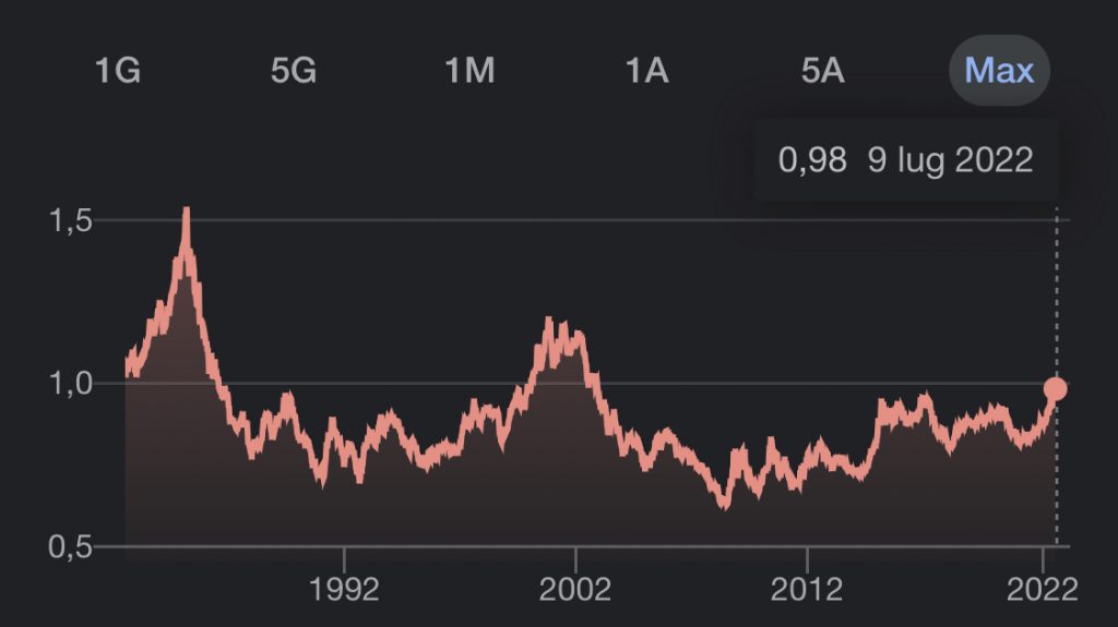 L’euro è ai minimi degli ultimi venti anni sul dollaro e sta continuando il processo di svalutazione iniziato mesi fa. Ciò vuol dire che le due economie stanno viaggiando a velocità diverse e gli investitori temono più le politiche restrittive della Banca Centrale Europea (BCE), annunciate lo scorso giugno, che quelle della Federal Reserve (FED) statunitense, attendendo dunque la recessione. La notizia dell’aumento dei tassi di interesse sta già registrando diversi effetti, ancor prima dell’entrata in vigore delle misure. Il rallentamento dell’economia europea potrebbe dunque spingere la BCE a una politica meno aggressiva sui tassi, ma è ancora da vedere. Ciò che è certo è che l’euro sta scivolando sul mercato e sta perdendo appetibilità internazionale, a vantaggio di valute estere, una su tutte il dollaro.