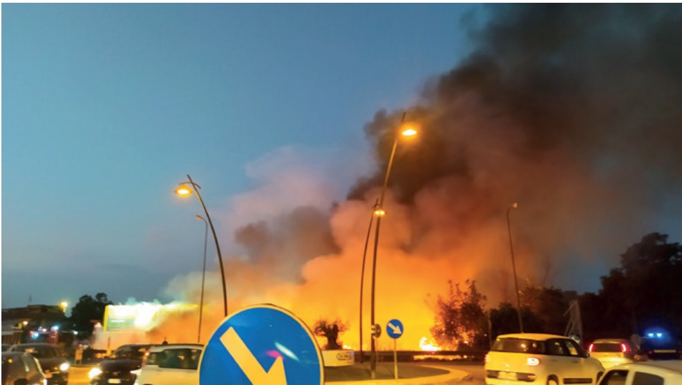 Diario di bordo: sono in centro città per una manifestazione contro i finanziamenti del governo alla guerra in Ucraina, mi chiamano dicendo di correre in un comune della provincia di Napoli, Caivano, poiché brucia un mega deposito di quasi 200 auto da rottamare. Fumo nerissimo in cielo visibile da diversi chilometri. Mi precipito col mio scooter, sento e vedo le sirene dei Vigili del Fuoco in uno scenario bellico, con quaranta gradi ed aria afosa anche senza rogo. Mi avvicino quanto più possibile per scattare qualche foto. Non so quanti centinaia di copertoni saranno andati carbonizzati, ai margini del Parco Verde, non so quanti terreni agricoli e falde acquifere saranno contaminate irrimediabilmente. Fatto sta che la Terra dei Fuochi ci accompagna ogni giorno della nostra esistenza. Soprattutto nel periodo caldo e nelle periferie lontane dai circuiti turistici. Qualche volta la politica se ne ricorda sui social, solitamente sotto elezioni.