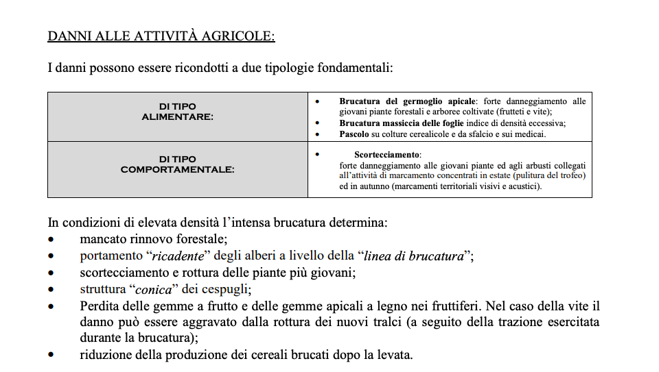 La prassi normale per gli ungulati autoctoni sono gli abbattimenti selettivi. Per gli animali introdotti è invece prescritta l’eliminazione.