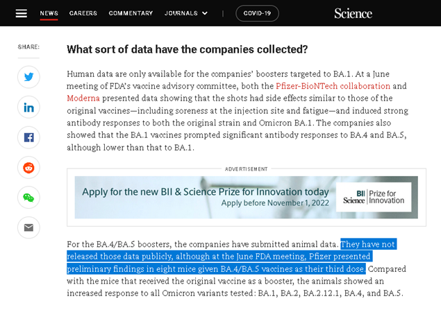 [14] Omicron booster shots are coming—with lots of questions, https://www.science.org/content/article/omicron-booster-shots-are-coming-lots-questions (accessed September 2, 2022).