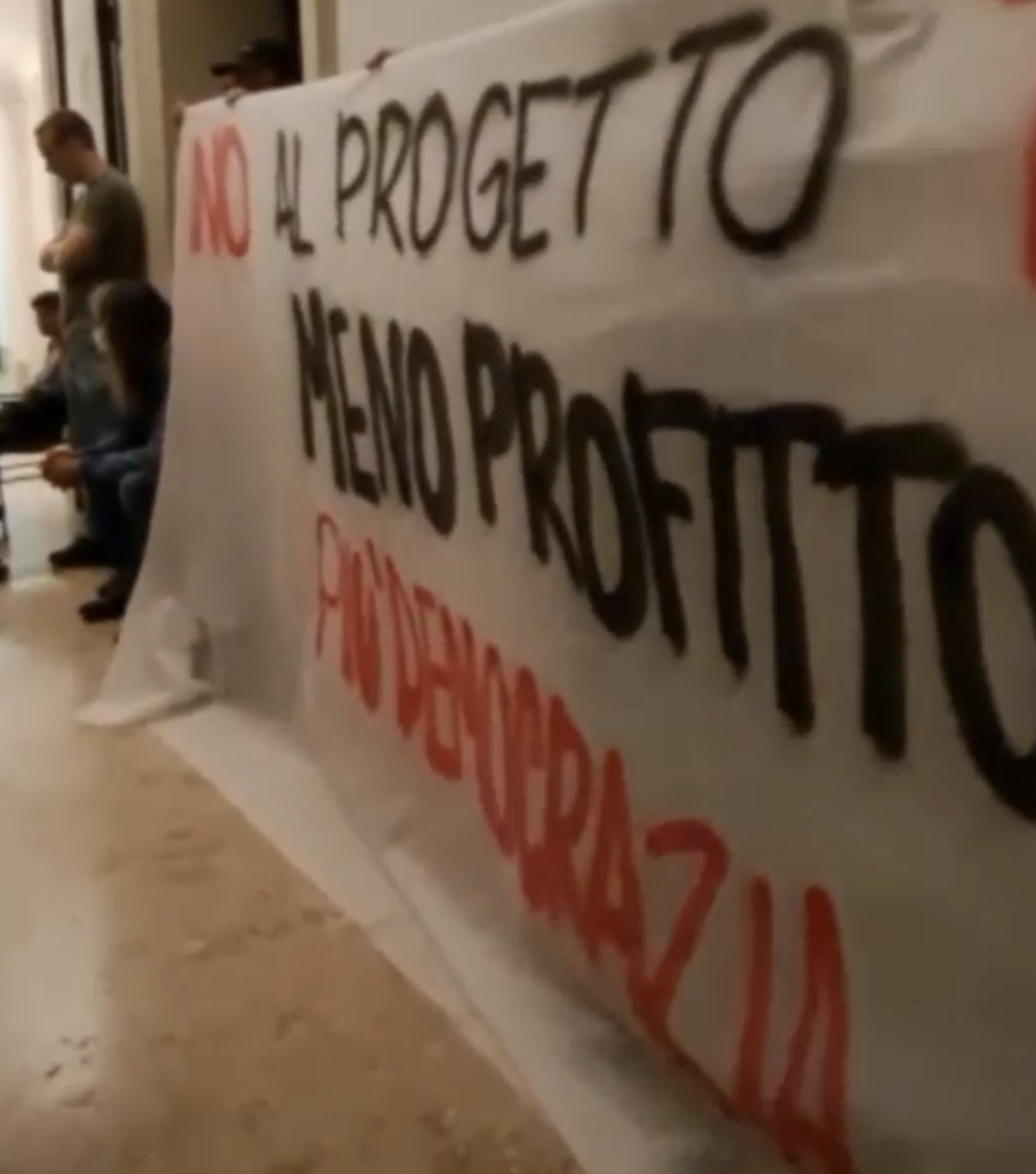 Per chiedere un consiglio straordinario sul progetto TAV martedì 18 settembre alcuni attivisti hanno occupato Palazzo Trissino, sede principale del Comune di Vicenza. I No Tav si sono incatenati al parapetto delle scale interne della sede comunale in segno di protesta contro un piano pronto a devastare interi quartieri – con la demolizione di interi condomini – in nome dell’alta velocità, per poi essere letteralmente trascinati via dalle forza dell’ordine. Gli attivisti chiedono di essere ascoltati, sottolineando come il coinvolgimento decisionale della cittadinanza sia stato quasi inesistente, nonostante il grande impatto dell’opera. Sotto accusa l’Amministrazione comunale, responsabile di aver agito escludendo chi verrà penalizzato dalla costruzione del così chiamato Progetto Av/Ac Verona-Padova 2° lotto “Attraversamento di Vicenza”.