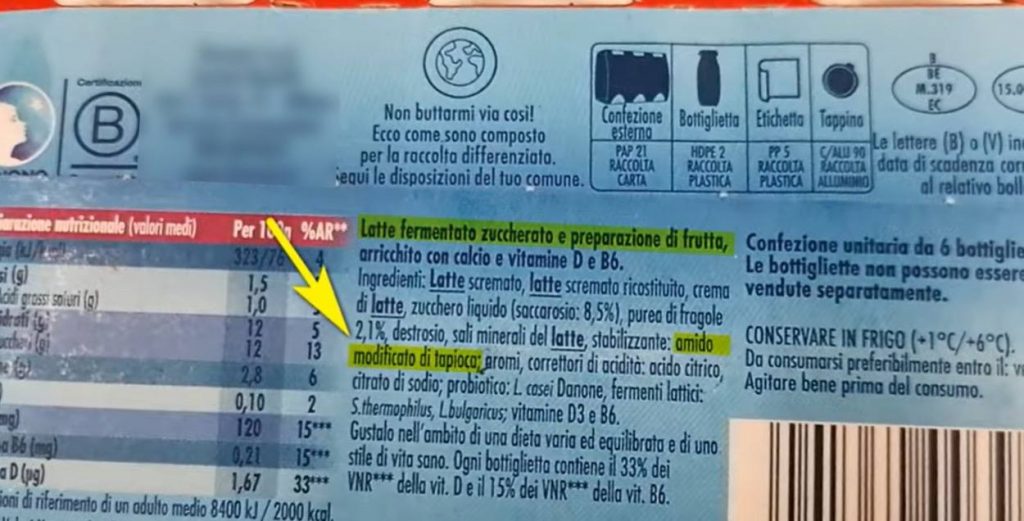 Non si tratta di una sostanza del tutto innocua per la salute, infatti ne viene vietato espressamente l’impiego in alcuni tipi di alimenti. Alcuni tipi di amido modificato non sono autorizzati negli alimenti per l’infanzia, perché contengono residui di una sostanza chiamata PCM (propilene cloroidrina) che è mutagena, cioè modifica il DNA causando dei danni. È il caso del E1442 per esempio, che però si trova in alcuni yogurt da supermercato (vedi foto) e probabilmente alcuni bambini assumono ugualmente, in maniera inconsapevole.