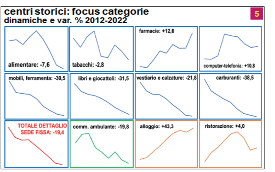 Andamento commercio al dettaglio nei centri storici\Fonte Confcommercio