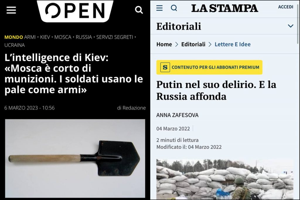 Ora, al di là dell’evidente assurdità della ricostruzione dal sapore propagandistico, è bene ricostruire come i media mainstream ripetano a spron battuto da un anno esatto a questa parte che la Russia non è più in grado di sostenere la guerra. Dal marzo 2022, infatti, la stampa occidentale ha più volte insistito sulla narrazione secondo la quale la Russia sarebbe senza risorse (e ora senza armi né munizioni), incapace di continuare a sostenere il conflitto.