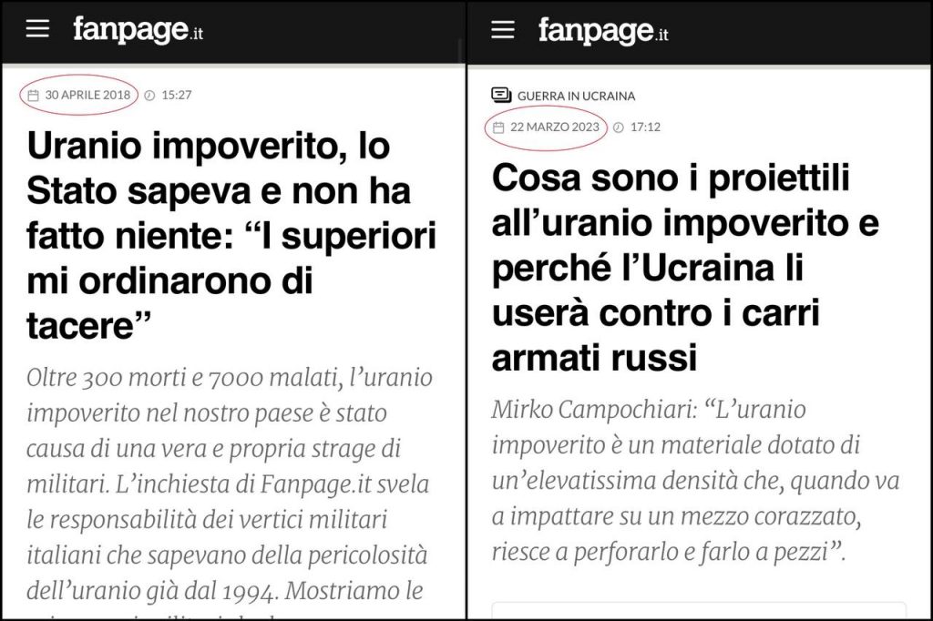 Peccato che nell’aprile del 2018, in un’inchiesta pubblicata sempre da Fanpage, si denunciava la “strage” dei soldati morti a causa delle munizioni con uranio impoverito e la linea editoriale andasse in una direzione contraria a quella presente: «Oltre 300 morti e 7000 malati, l’uranio impoverito nel nostro paese è stato causa di una vera e propria strage di militari. L’inchiesta di Fanpage.it svela le responsabilità dei vertici militari italiani che sapevano della pericolosità dell’uranio già dal 1994». Nell’articolo si riprendevano i dati dell’Osservatorio Militare, un gruppo indipendente fatto di militari ed ex militari, secondo cui «i soldati morti per malattie tumorali contratte a causa dell’uranio impoverito sono 345, mentre gli ammalati sono circa 7.000. Numeri impressionanti per quella che abbia definito come una vera e propria strage».