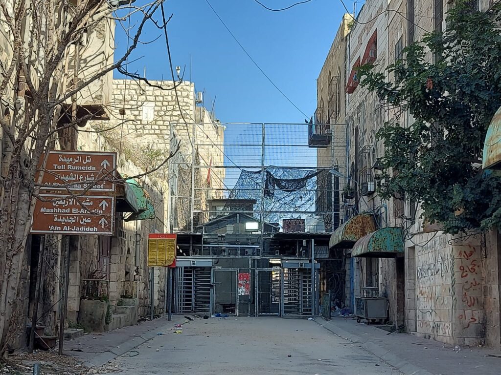 l posto di blocco che permette di entrare a Tel Rumeida, insediamento israeliano nel cuore della città vecchia di Hebron, è sorvegliato da militari con il fucile puntato sulla strada. Sopra al tornello attraverso cui bisogna camminare, di fianco a numerose telecamere, è installato un fucile automatico. Una volta superato il posto di blocco, ci si lascia alle spalle il caos della città: le strade di Tel Rumeida, quasi tutte chiuse ai palestinesi, sono infatti completamente vuote e silenziose, percorse quasi esclusivamente da militari israeliani armati fino ai denti. Le vetrine sbarrate dei negozi palestinesi che sono stati costretti a chiudere creano un’immagine di abbandono e desolazione. Il senso di tensione costante è intensificato dall’onnipresenza delle telecamere di sorveglianza, installate in ogni strada dell’insediamento.