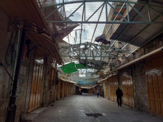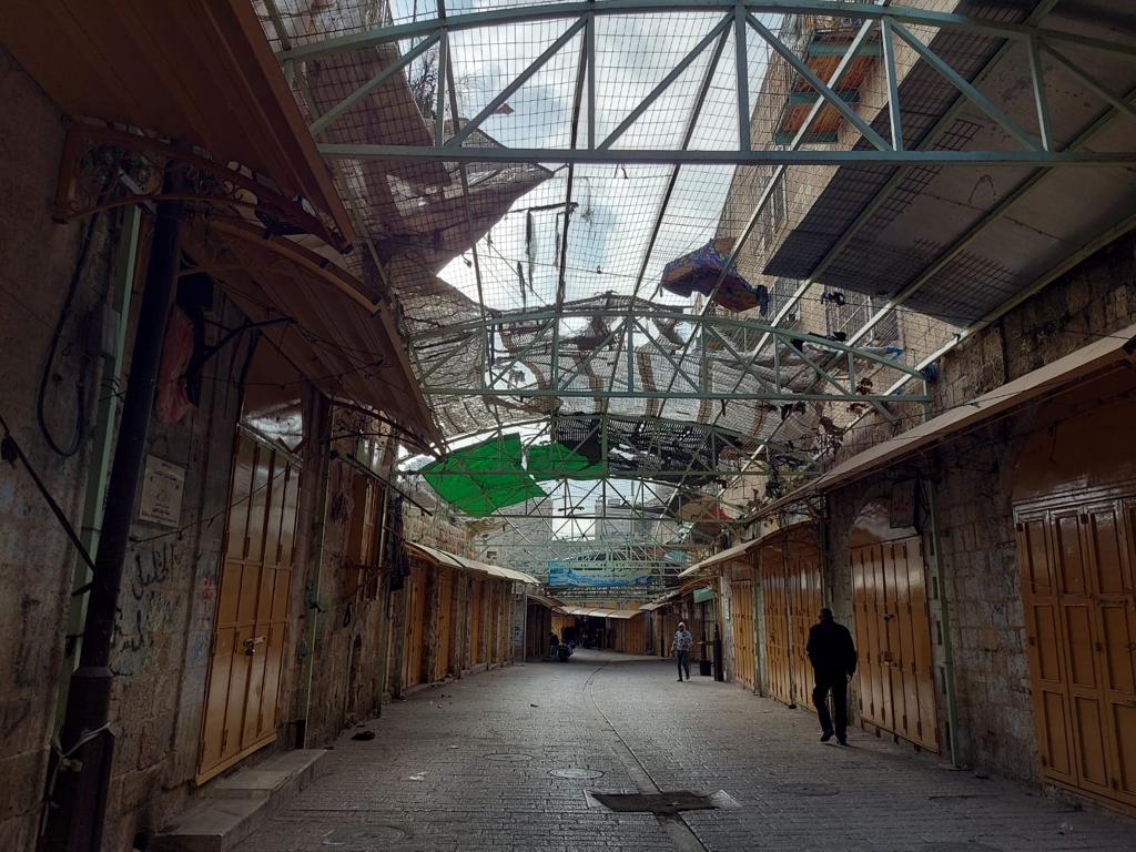 [Shuhada street, un tempo una delle strade più importanti di Hebron, oggi chiusa ai palestinesi. Credit: Maria Colonna.]