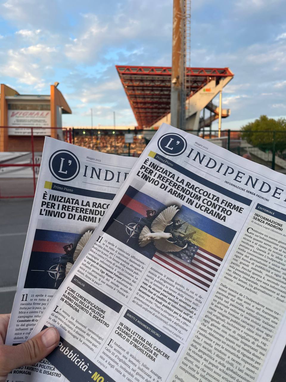 Ormai due anni e mezzo fa nasceva il progetto de L’Indipendente, che sognava di portare una ventata di novità nel panorama dell’informazione italiana. Un giornalismo obiettivo, imparziale, con il solo scopo di informare, senza padroni che ne dettassero la linea. Da allora la nostra redazione è cresciuta: abbiamo pubblicato decine di inchieste, reportage da ogni parte del mondo, migliaia di articoli. Tutto questo non sarebbe stato possibile senza i nostri abbonati, che oggi ci hanno aiutati a realizzare un altro, grande obiettivo. Nelle scorse settimane abbiamo distribuito oltre 50 mila copie di un’edizione speciale cartacea, completamente gratuita, de L’Indipendente. Lo abbiamo fatto in moltissime regioni: dal Piemonte al Lazio, passando per l’Emilia Romagna, la Toscana, il Lazio, il Veneto. Abbiamo consegnato il giornale a mano nelle piazze, negli stadi, nelle spiagge, abbiamo partecipato a eventi e manifestazioni, siamo stati presenti a tutti i banchetti per la raccolta firme dell’iniziativa del Referendum Italia per la pace promosso dal Comitato di Liberazione Nazionale e da Generazioni future e dal comitato Ripudia la guerra. Un progetto ambizioso, volto a portare un’informazione imparziale e libera tra le mani di decine di migliaia di italiani. E che non sarebbe stato possibile senza l’aiuto dei nostri lettori, che si sono trasformati in diffusori volontari del giornale nelle piazze di tutta Italia, rispondendo a decine al nostro appello sui social.