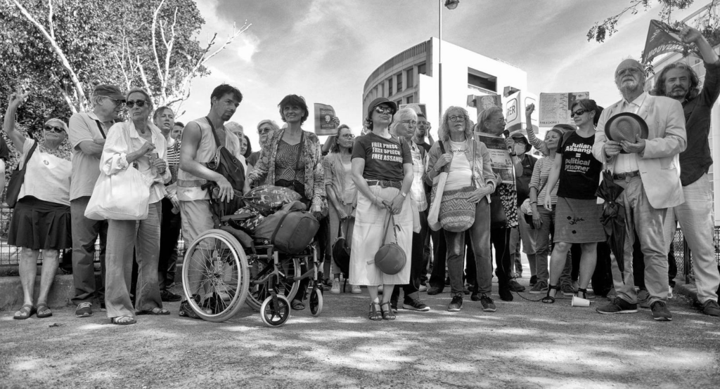 Dal momento che il 3 settembre è la festa del papà in Australia, i sit-in hanno pure voluto ricordare che Julian, come padre, non ha mai visto i suoi figli più piccoli, di 4 e 6 anni, se non da neonati o dietro le sbarre della prigione. Gli attivisti hanno anche voluto rendere omaggio al padre di Julian, John Shipton, che, pur settantenne, gira instancabilmente in tutto il mondo per perorare la causa del figlio che attende l’estradizione negli Stati Uniti e una possibile condanna a 175 anni per aver rivelato crimini di guerra utilizzando documenti riservati.