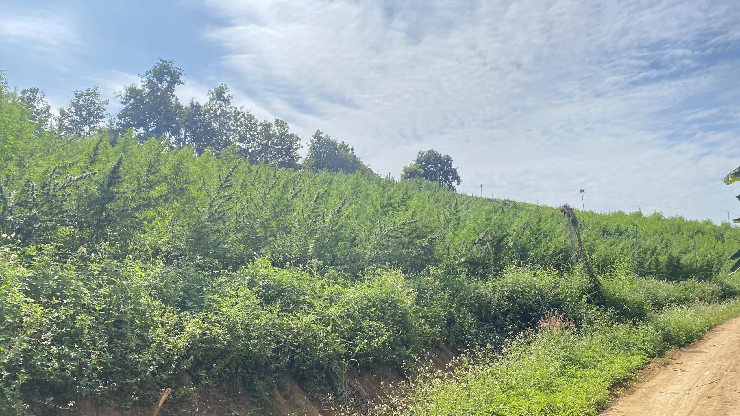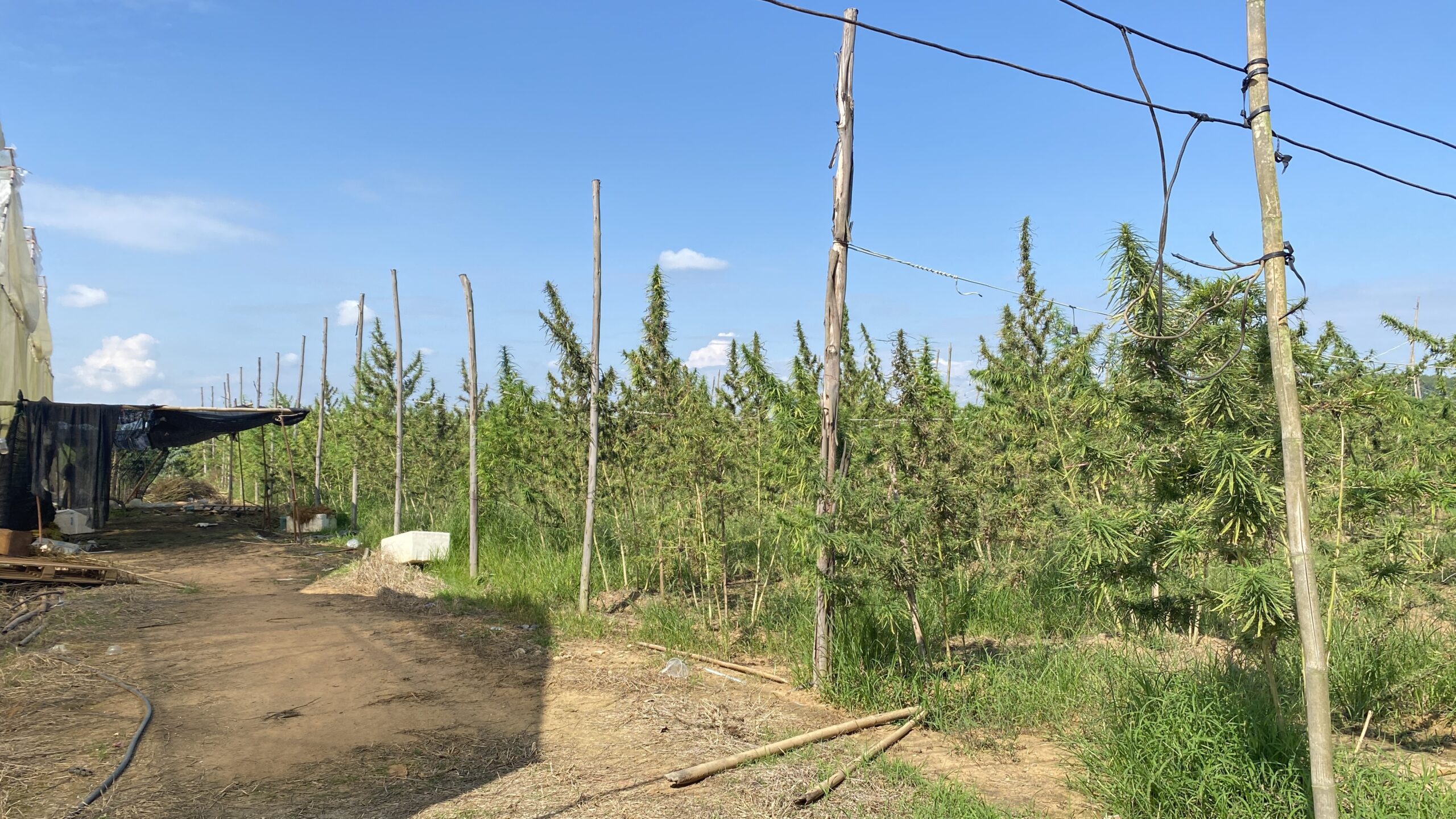 Così faccio: torno in sella e mi addentro nei vicoli in terra battuta. Intorno a me solo verde, insetti e tanti profumi; ogni tanto anche qualche contadino piegato all’ingiù. Dopo una decina di minuti di guida arrivo all’area dedicata alla coltivazione in serra. «Lavoro qui da 3 anni» mi dice il capoarea. «E come me, in totale, l’azienda dà di che mangiare a 200 persone e rispettive famiglie». Ci spostiamo nella serra adiacente e capisco che ciò che dice è letterale: intenta alla selezione e al travaso di 10 diverse genetiche, una giovane madre imbocca, allo stesso tempo, la colazione alla figliola. «Queste genetiche sono destinate alla vendita in tutto il mondo» continua il caporeparto; «Thailandia e Asia in primis». Incantato, osservo le infiorescenze capovolte ad essiccare e in men che non si dica mi ritrovo le natiche sul sedile passeggeri di un pick-up nero. È colpa dell’animo felice del supervisore, orgoglioso di farmi esplorare l’area sotto la sua gestione. «Nel mio settore ho all’incirca 15.000 alberi» dei quali «ci prendiamo cura dalla germinazione, passando per la fase vegetativa, di fioritura e raccolta, per giungere a prodotti rigorosamente grezzi e pronti alla vendita entro un arco massimo di 6 mesi».