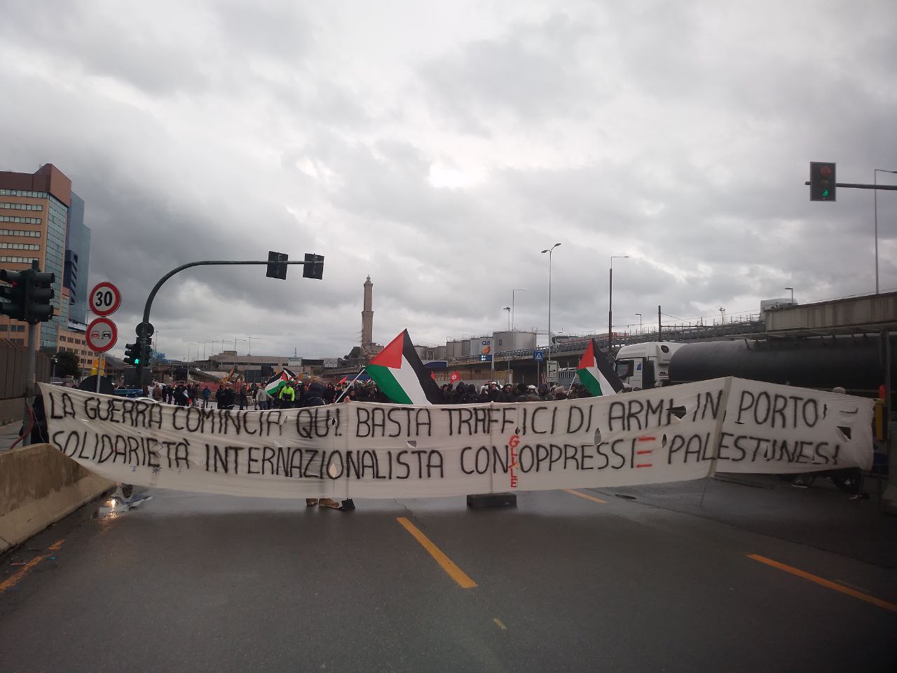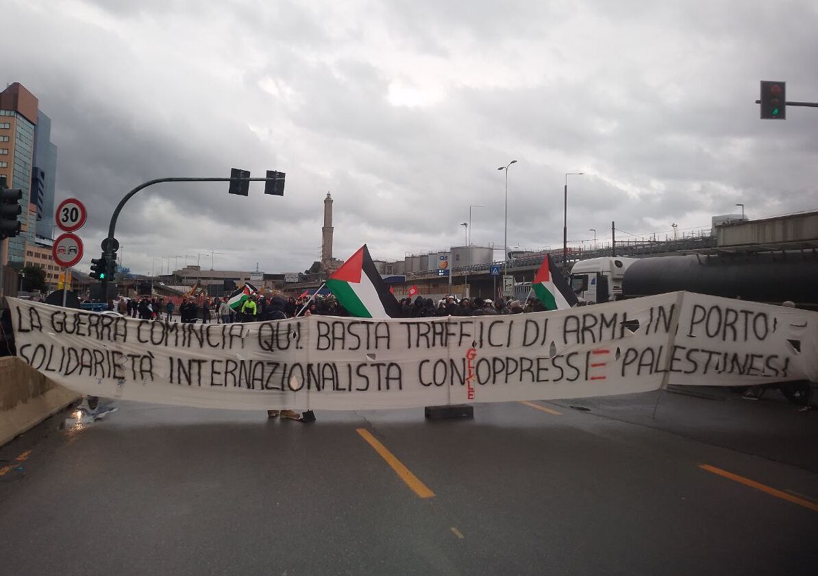 I partecipanti al corteo nel capoluogo ligure si sono riuniti in Piazza Nicolò Barabino a Sampierdarena dalle prime ore dell’alba. Poi, verso le 7:30, dopo aver srotolato uno striscione con la scritta “Contro l’aggressione militare in Medio Oriente, solidarietà con la resistenza palestinese”, i lavoratori e gli attivisti si sono diretti nella direzione dei varchi portuali di San Benigno, provocando forti disagi al traffico nella zona. “La giornata di oggi con il blocco nei confronti dei traffici del porto di Genova – che di fatto rappresenta una delle arterie della logistica di guerra – vuole dimostrare come sia possibile non solo dare in modo concreto solidarietà agli oppressi palestinesi, ma anche mettersi nella strada per impedire e ostacolare il lento incedere della terza guerra mondiale”, scrive il Si Cobas in un comunicato, aggiungendo: “Se è essenziale l’attacco in varie forme alle imprese israeliane, come la compagnia navale Zim che fa regolarmente scalo in porto, è necessario ricordare le responsabilità rispetto al genocidio dei diversi Stati e imprese che lucrano e fanno profitti, facendo sentire la pressione della solidarietà, continuando a costruire percorsi che portino a sabotare il continuo ‘accreditamento sociale’ che viene dato allo Stato di Israele”. «Siamo qua perché crediamo ce ci sia un allarmante allargamento delle dinamiche di guerra e un preoccupante riarmo diffuso – ha detto Martino Puppo, responsabile Si Cobas –. I lavoratori non vogliono subire tutto ciò e oggi siamo qua per provare a fermare e bloccare la logistica della guerra che iniziano anche dal nostro porto come la lotta dei portuali ci ha insegnato. Solo oggi in porto sono previste le lavorazioni per tre navi della Zim che transiteranno nel porto di Genova».