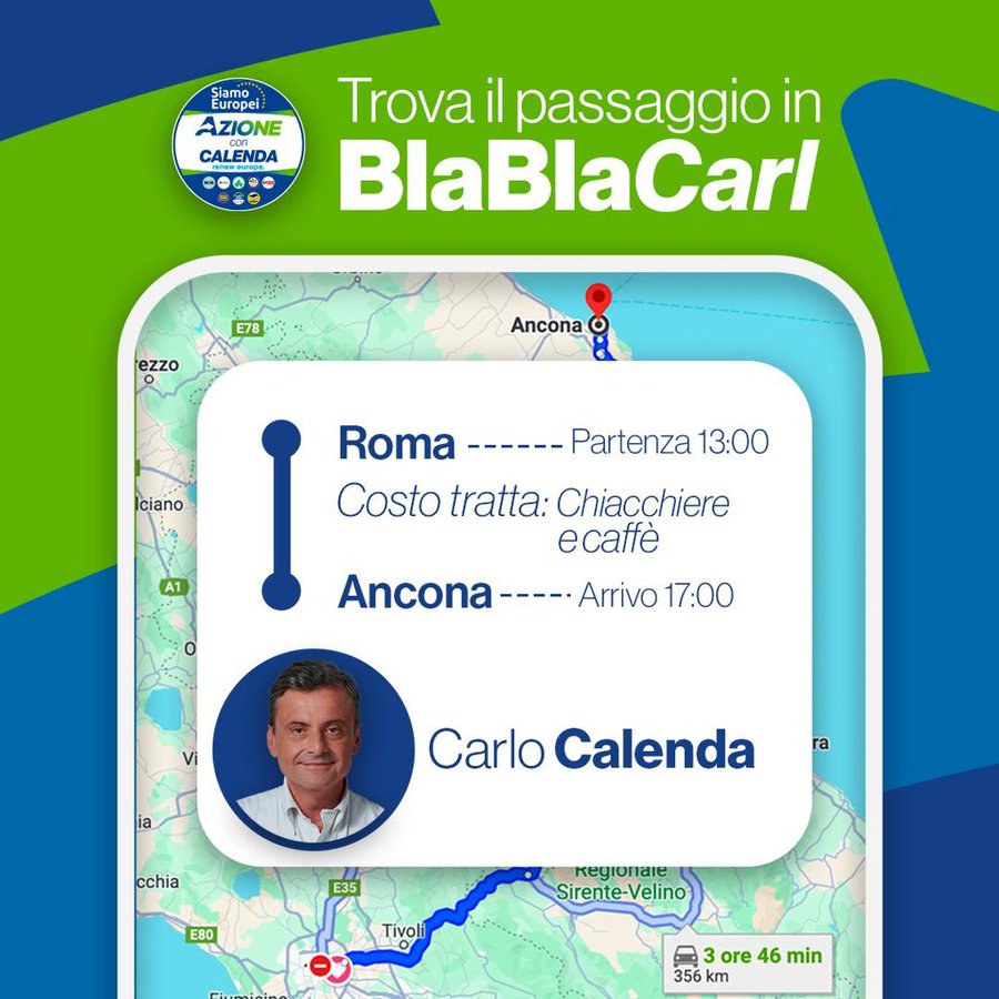 L’immagine fa la sua parte, soprattutto in campagna elettorale. La chiave del successo sta nella corrispondenza tra l’immagine trasmessa e quella percepita. In mezzo c’è un baratro profondo, buio, colmo di imbarazzo che rischia di trasformarsi in un tremendo autogol per i candidati che si espongono. Tra resoconti quotidiani sugli appuntamenti della campagna elettorale, sondaggi su Instagram e commenti su temi di attualità Carlo Calenda ha puntato forte sulla figura del politico del popolo, per il popolo e vicino al popolo. Il tutto accompagnato dall’inconfondibile cadenza romana, tratto personale che però performa nell’ottica di mostrarsi inscalfibile alla sopraggiunta vita politica, vista dai più come pratica immorale e decadente. A inizio maggio Calenda ha calato il carico con BlaBlaCarl, offrendo dunque a elettori, simpatizzanti o semplicemente curiosi un passaggio in macchina verso la prossima destinazione. Il costo della tratta? “Chiacchiere e caffè”.