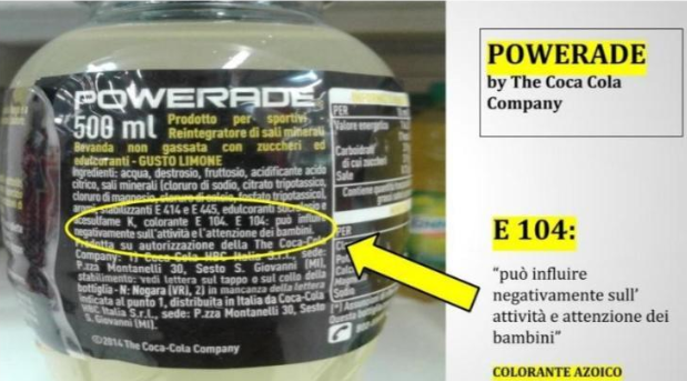 Il Regolamento (CE) n. 1333/2008 del Parlamento Europeo e del Consiglio europeo, emanato il 16 dicembre 2008, ha voluto proprio normare tutto il mondo degli additivi alimentari, coloranti inclusi. Nell’Allegato V del suddetto Regolamento è possibile consultare l’elenco dei coloranti alimentari per i quali l’etichettatura dei prodotti che li impiegano deve obbligatoriamente riportare la seguente dicitura: «Può influire negativamente sull’attività e l’attenzione dei bambini».
