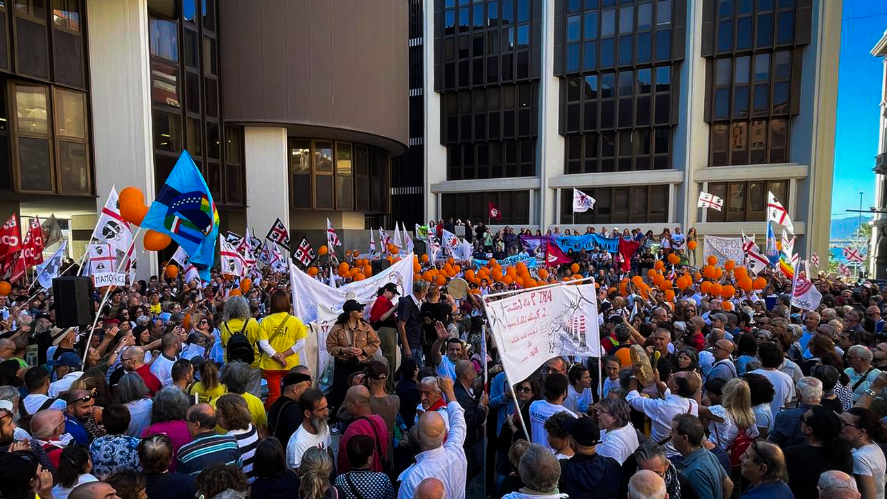 La manifestazione di oggi è stata lanciata per consegnare le firme dell’iniziativa di legge popolare “Pratobello 24” e si è tenuta a Cagliari davanti al palazzo della regione. All’evento hanno partecipato migliaia di persone provenienti da tutta l’isola, e hanno parlato diversi esponenti di comitati. Tra la folla sono sventolate bandiere di ogni colore: presenti, tra i tanti, sigle sindacali come UIL, Cobas, e Confederazione sindacale sarda, ma anche sigle indipendentiste, firme locali e, naturalmente, tanti stendardi della Sardegna. Nel corso del presidio sono state distribuite dozzine di palloncini di colore arancione, simbolicamente composti da materiale biodegradabile e contenenti semi che ognuno poteva portare a casa. Le scatole che contenevano le firme sono state passate di mano in mano per la folla lungo un cordone rivolto verso il palazzo. Al termine dei vari atti dimostrativi, dall’interno dell’edificio hanno fatto entrare i rappresentanti per consegnare le firme e presentare la proposta.