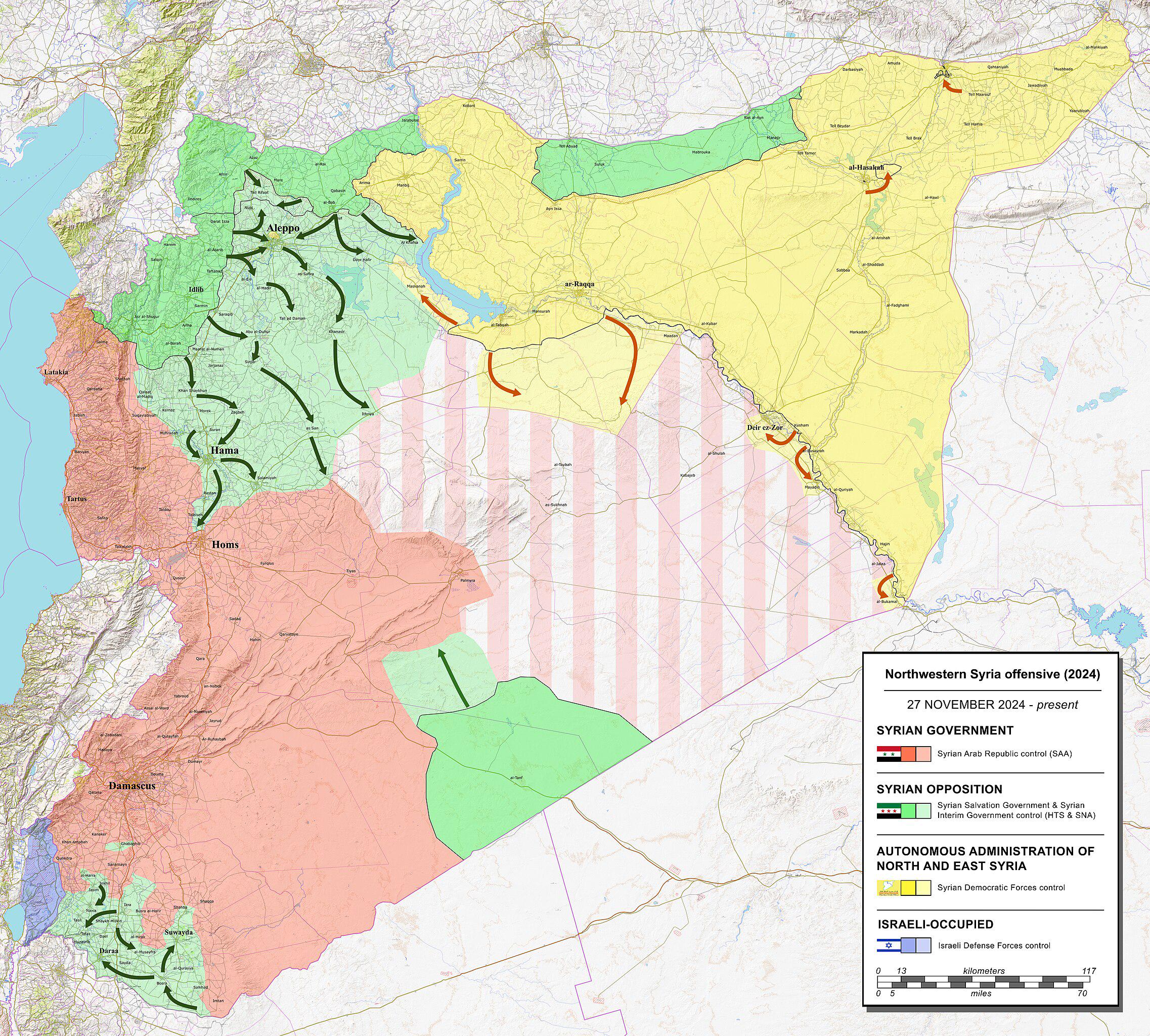 Se il recente evolversi degli eventi nel contesto siriano può lasciare aperti diversi scenari e interpretazioni, una cosa appare inesorabilmente evidente: la debolezza dell’esercito siriano. Le forze governative di Assad, al 7 dicembre, non sono state in grado di offrire una resistenza militare concreta per contrastare l’avanzata dei “ribelli”. La città di Hama non era mai stata conquistata, nemmeno nelle prime fasi del conflitto del decennio precedente. Inoltre, nelle ultime ore, diversi rapporti segnalano defezioni da parte dell’esercito siriano anche in zone del Paese non direttamente coinvolte dall’offensiva di Hayat Tahrir al-Sham (HTS). A sud di Damasco, le città di As-Suwayda e Dar’a sono cadute sotto il controllo delle forze di opposizione. L’esercito siriano si sarebbe inoltre ritirato dalle sue posizioni nella provincia di Deir ez-Zor, nel nord-est, lasciando il territorio sotto il controllo delle Forze Democratiche Siriane (SDF), un’alleanza di milizie curde, arabe e assiro-siriache sostenute dagli Stati Uniti.