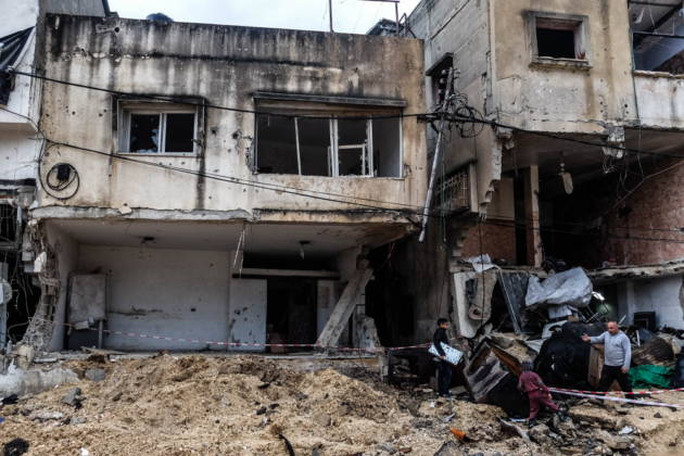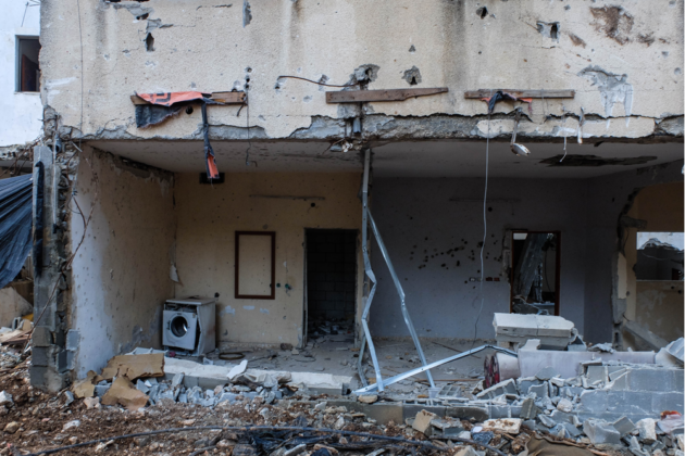 Un gruppetto di giovani beve un caffè in piedi davanti alle macerie di una casa completamente crollata. Uno di loro ha al collo un M-16, tra le armi più usate dalla resistenza contro l’esercito di Tel Aviv. «Questa era casa mia», dice uno dei tre ragazzi indicando l’edificio abbattuto nell’ultimo raid. «Hanno messo una bomba dentro e l‘hanno fatto esplodere». Anche la casa accanto è chiaramente pericolante. Ma una donna apre la porta che ormai dà nel vuoto, non essendoci più le scale, e con un saluto dice qualcosa ai giovani in arabo. Sulle pareti intorno, i segni del boato si vedono ancora: vetri delle finestre scomparsi, intonaci danneggiati dai pezzi di casa volanti. «I jesh (i militari israeliani) hanno paura a confrontarsi con noi», dice il ragazzo armato. «Non vogliono affrontarci frontalmente. Preferiscono buttare le bombe e attaccare con i droni». Accende una sigaretta. «Loro hanno tutte le armi e le tecnologie più avanzate, aiutati dall’America e dall’Europa. Noi, abbiamo solo questi» dice mostrando il fucile.