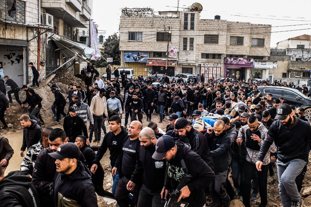 «Mio figlio ha voluto fare la sua parte in quello che sta accadendo», comincia la madre. «Aveva preso questa scelta quando ha visto che la situazione qua continuava a peggiorare. Poi, con Gaza, e gli attacchi ai campi profughi… Era ricercato dai servizi israeliani; dopo che la maggior parte dei suoi amici sono stati uccisi, aveva deciso di non nascondere più la sua identità», dice. «Quella notte, quando è iniziato il raid, avrebbe potuto andare via, gli avevano offerto di scappare da qua. Ma lui ha rifiutato. Ha deciso di rimanere, per difendere il campo». Gli occhi di tutti sono cerchiati dalla tristezza, ma l’orgoglio e la profonda accettazione del destino del figlio la rendono forse più sostenibile. «Dopo che è diventato un martire, i jesh [militari israeliani, ndr] sono venuti qui, in questa casa, e hanno provato a entrare. Hanno sparato contro i muri,» continua il padre.