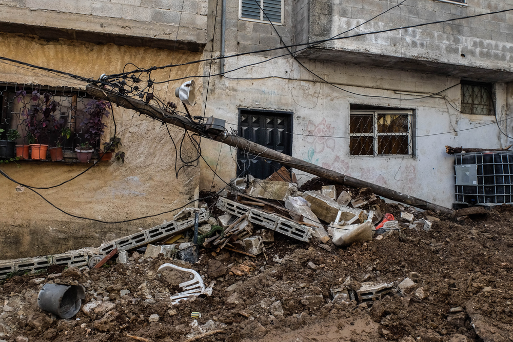 CAMPO PROFUGHI DI NUR SHAMS, TULKAREM, PALESTINA OCCUPATA – Strade sventrate, case a pezzi, esplose, bruciate. Vari pali della luce abbattuti hanno tolto l’elettricità a una parte del campo. Il sistema idrico avrà bisogno di settimane prima di essere restaurato a causa dei danni subiti, mentre centinaia di famiglie rimangono senza acqua. Il campo profughi di Nur Shams sembra un campo di battaglia, e lo è stato, ancora una volta, appena qualche giorno fa: i fori dei proiettili sono ben visibili sulle facciate di molte case e le ferite ancora aperte sulle almeno 14 mila persone che lo abitano. Una donna anziana siede su uno sgabello davanti a una casa semi-distrutta: l’intera parete è crollata, quello che forse era un salotto dà ora sulla strada principale. «Cosa dobbiamo fare? Hanno distrutto tutto di nuovo», chiede, gli occhi pieni di dolore. «Vengono, uccidono, distruggono tutto. Cosa dobbiamo fare?». Poche parole mentre camminiamo nel fango della piazzetta, dove ormai la strada è solo un ricordo.