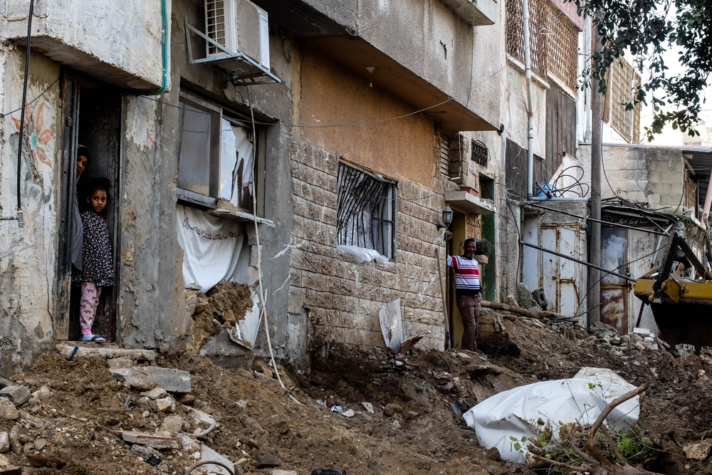 Davanti a noi, una via di melma e terra inizia proprio dove c’è il buco di una casa tra gli edifici. La gente è stata obbligata ad andare via. «Una piccola Gaza!» dice ancora il ragazzo.