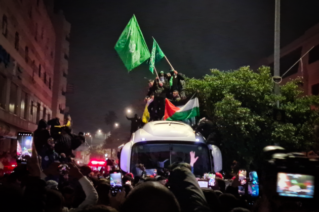 RAMALLAH, CISGIORDANIA – Sono migliaia le persone radunate in Al Midan square, a Beitunia, alle porte di Ramallah. È qui che si aspettano i 90 prigionieri e prigioniere liberate nella notte grazie all’accordo di cessate il fuoco entrato in vigore ieri mattina. I due pullman arrivano intorno all’1 di notte, dopo ore di attesa, di canti e di cori. «Israele non vuole che si festeggi. È per questo che li rilasciano a quest’ora, per evitare che si creino manifestazioni di sostegno e momenti di festa» dice Islam, uno dei giovani radunati nella piazza. Le famiglie che erano radunate fuori alla prigione di Ofer, il carcere dove tutte le 69 detenute e i 21 minorenni erano stati radunati, sono state colpite da lanci di lacrimogeni e di proiettili di gomma, che hanno ferito diverse persone. Per evitare celebrazioni gli israeliani avevano infatti dichiarato i dintorni del carcere «zona militare». Intanto, alcune case di detenuti di Gerusalemme in fase di rilascio sono state perquisite e alle famiglie è stato intimato di non effettuare nessuna celebrazione pubblica per i loro cari. Almeno due feriti anche a Beitunia, dove i militari israeliani, che precedevano fino alla cittadina i due bus di prigionieri, hanno sparato proiettili di gomma e bombe stordenti.