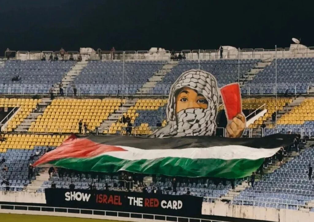 In una società sempre più depoliticizzata e asettica, i gradoni si confermano luogo di denuncia sociale. Gruppi di tifosi sparsi per il mondo stanno protestando contro il genocidio israeliano ai danni del popolo palestinese nonché verso la complicità delle istituzioni, nello specifico quelle calcistiche, come la FIFA e la UEFA. Così è nata “Show Israel the Red Card” (Cartellino rosso per Israele), una campagna di boicottaggio nei confronti dello Stato ebraico, che ne chiede l’esclusione da tutte le competizioni mondiali. Di settimana in settimana il movimento ha macinato numeri e chilometri, sbarcando in oltre trenta Paesi col sostegno di più di 70 tifoserie, che tra striscioni e cartellini rossi hanno usato il calcio come veicolo di denuncia, rilanciando una sua dimensione viscerale spesso trascurata, tanto dai legislatori che non vivono lo stadio quanto, purtroppo, dai tifosi stessi.