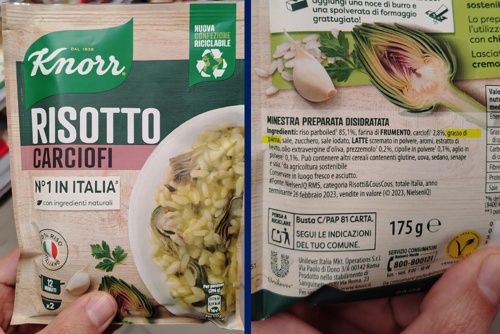 Alla data odierna ci sono ancora diversi prodotti alimentari in commercio che impiegano questo olio. Possiamo citare alcuni risotti pronti, gelati in biscotto, snack da aperitivo, creme spalmabili alla nocciola, salse da condimento e sughi pronti. Ora non resta altro da fare che aspettare e vedere se le aziende alimentari torneranno ad un comportamento più responsabile nei confronti dei consumatori e dell’ambiente (almeno nelle intenzioni e all’apparenza) come fu nel 2018 quando abbandonarono spontaneamente l’uso di questo grasso. Il tempo ci mostrerà le vere intenzioni dell’industria e le sue scelte, se saranno a favore della collettività o del loro mero interesse economico. Segnalo infatti che l’olio di palma è un grasso che consente all’industria maggiori profitti rispetto a quello di girasole o al burro, infatti costa 3-4 volte meno di questi altri grassi.