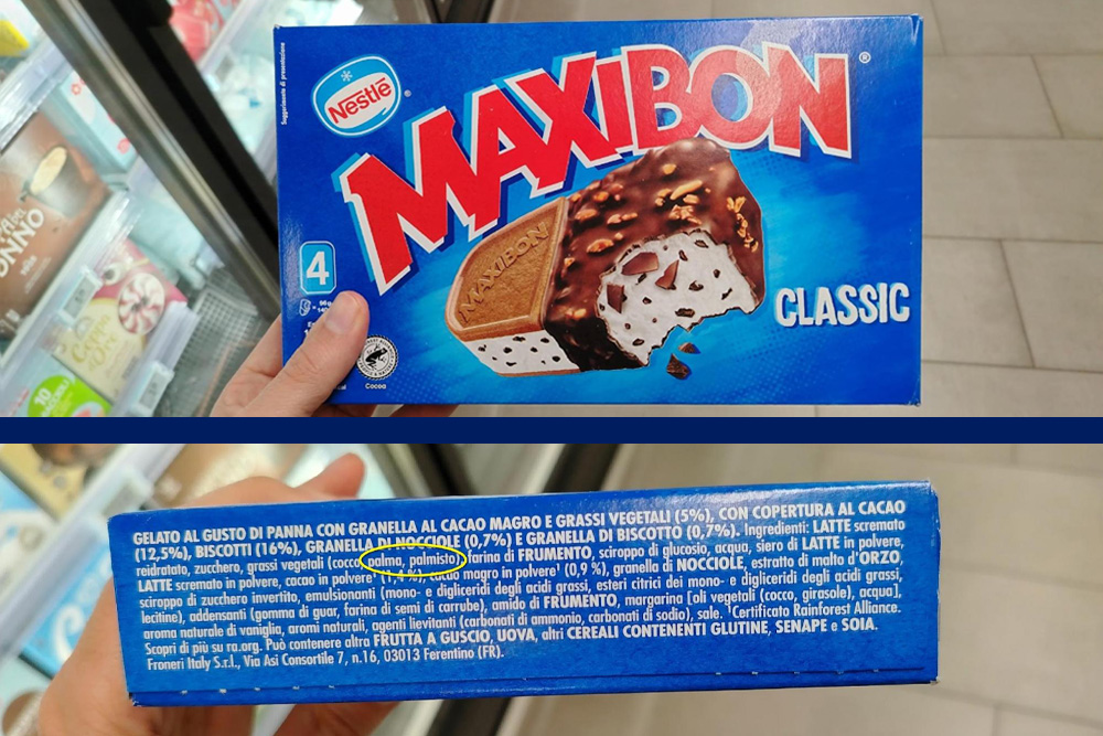Negli ultimi anni la scritta «senza olio di palma» è diventata una delle più diffuse sugli scaffali dei supermercati e nelle pubblicità. Come forse ricorderete nel 2014 ci fu una intensa campagna mediatica contro questo grasso, da parte di associazioni ambientaliste e dei consumatori, che coinvolse diversi Stati europei e che portò ad un risultato spettacolare: la stragrande maggioranza delle aziende alimentari abbandonò l’olio di palma e lo sostituì con altri oli vegetali. L’unica assenza di rilievo fu la Ferrero, che ancora oggi utilizza questo grasso per la Nutella e decine di altri prodotti.