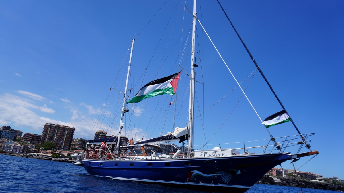 A portarmi con un piccolo gommone a bordo della nave della Freedom Flotilla, ormeggiata un centinaio di metri oltre gli scogli del porticciolo, è Yazan Eissa, un ragazzo palestinese che è il tuttofare della ciurma. A bordo ci sono altri tre membri dell’equipaggio, rimasti a sorvegliare l’imbarcazione in attesa della partenza. Tra loro il dottor Mohammed Mustafa, che a lavorare come volontario a Gaza c’è già stato e ora prova a tornarci perché «ci sono migliaia di bambini da curare, e quelli che non sono morti sotto le bombe sono completamente traumatizzati e stanno vivendo un inferno che è impossibile da descrivere». Sul ponte della nave, e anche sottocoperta, tolto lo spazio strettamente necessario per dormire e cucinare, ogni angolo è pieno di viveri da portare a Gaza: succhi di frutta, latte, riso, cibo in scatola, barrette proteiche. Sono state donate da centinaia di cittadini catanesi e di tutto il mondo. Yazan sa benissimo che, se riusciranno ad arrivare a Gaza, basteranno a sfamare solo pochi tra i due milioni di palestinesi allo stremo, ridotti alla fame da mesi di crimini di guerra da parte del governo israeliano che, attraverso il blocco di ogni aiuto umanitario e la distruzione sistematica dei campi agricoli, sta usando la fame come arma per costringere la gente di Gaza ad andarsene dalla propria terra: «Il nostro è un aiuto simbolico, serve innanzitutto a testimoniare alla gente di Gaza che i cittadini del mondo sono con loro», afferma.