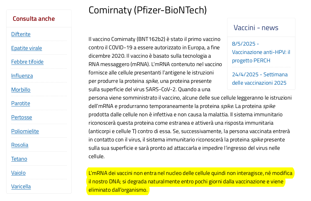 Non è noto per quanto tempo il materiale genetico vaccinale persiste nelle cellule, continuando a indurre la sintesi della proteina spike