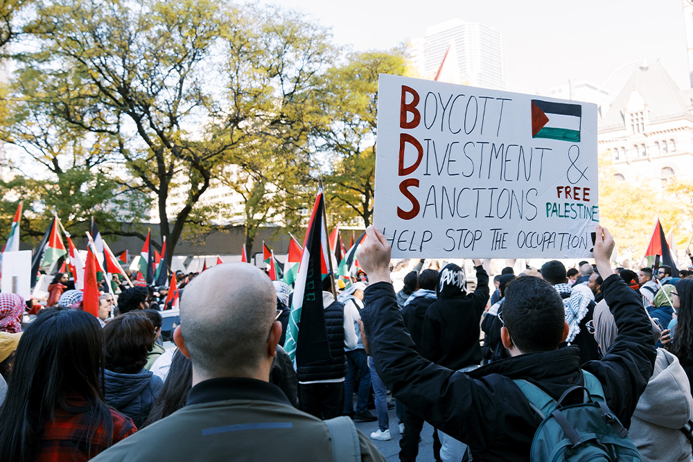 Il movimento internazionale BDS (Boicottaggio, Disinvestimento, Sanzioni) sostiene il principio secondo il quale i palestinesi hanno gli stessi diritti del resto dell’umanità per la libertà, la giustizia e l’uguaglianza. Ispirato al movimento anti-apartheid sudafricano, l’appello del BDS esorta ad agire e fare pressione su Israele affinché rispetti il diritto internazionale. Il BDS è oggi un movimento globale molto ampio: ne fanno parte sindacati, associazioni accademiche, chiese e movimenti di base che rappresentano milioni di persone. Anche numerosi gruppi ebraici progressisti svolgono un ruolo importante nel movimento. Personaggi pubblici come l’arcivescovo Desmond Tutu, Naomi Klein, Roger Waters, Angela Davis, Judith Butler, Gabor Matè e tantissimi altri sostengono il BDS.