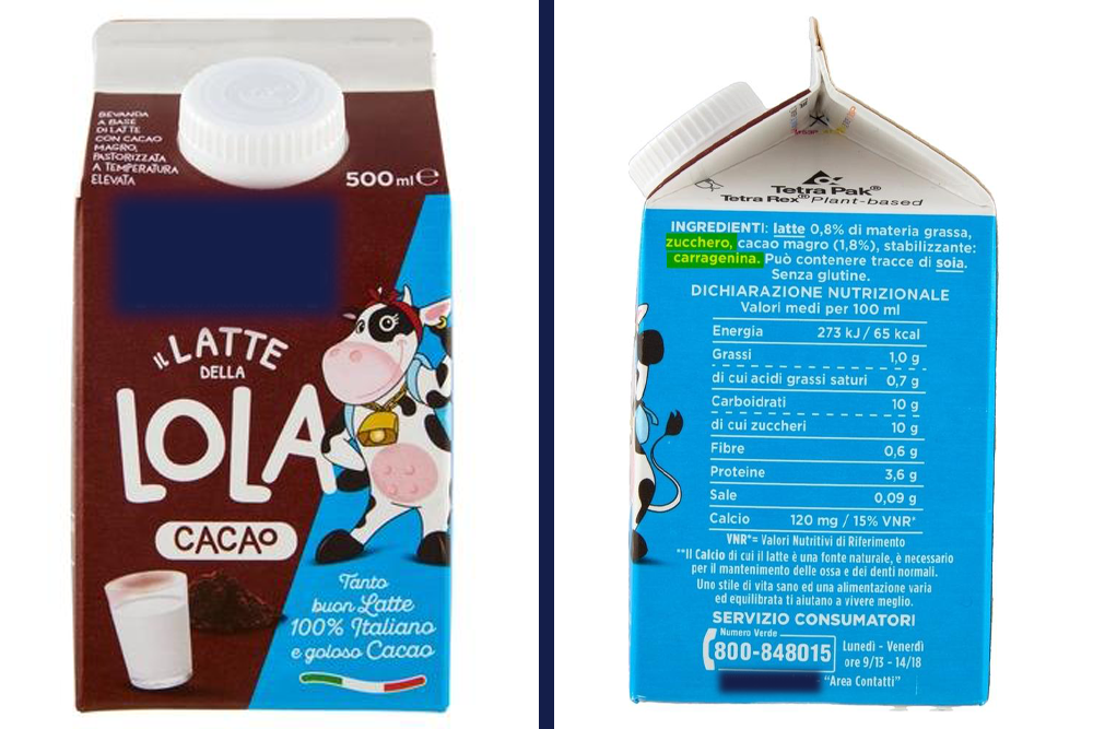 Ma non finisce qua, il «latte della Lola» presenta anche altri problemi di tipo nutrizionale. Per prepararlo viene tolta la panna del latte intero e rimpiazzata con un additivo che lo rende cremoso e più denso: la carragenina, un emulsionante. Si tratta di additivi alimentari ampiamente utilizzati nell’industria alimentare perché permettono di migliorare la consistenza, il colore e il gusto dei cibi processati, oltre ad aumentare la durata di conservazione dei prodotti.