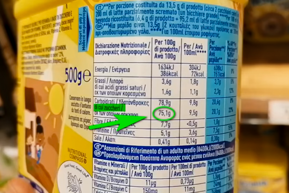 Da sempre i prodotti che l’industria alimentare e il marketing propongono per i bambini sono colorati, allegri, raffigurano pupazzetti simpatici e si accompagnano a spot TV che promettono tanta salute ed energia per i bimbi. Molti consumatori non sanno che tali prodotti sono quasi per intero a base di zucchero e non di cacao. Questo è il caso, ad esempio, di un noto prodotto in polvere da aggiungere al latte, che esiste in commercio da tantissimi anni e che ancora oggi si compone per ben il 75% di puro zucchero (un tempo arrivava persino all’81% di zucchero).