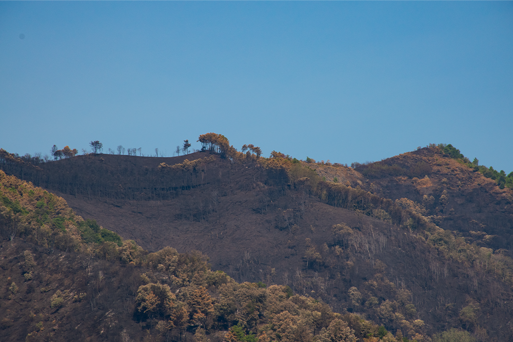 TERZIGNO (NA) — Paura e rabbia prevalgono tra i sentimenti degli abitanti, che per giorni hanno visto bruciare parte del proprio polmone verde, la Pineta del Parco Nazionale del Vesuvio. Siamo ai piedi del Monte Somma, che da queste parti viene semplicemente chiamato “‘a muntagna”, luogo geografico sì ma anche custode di tradizioni e cultura. Qui il ricordo dell’incendio del 2017 — quando bruciarono circa 1600 ettari di territorio, l’equivalente di 1100 campi da calcio — è ancora vivo. Come allora, le fiamme hanno colpito più Comuni. Questa volta l’incendio non ha minacciato i centri abitati, ma si stimano almeno 560 ettari di territorio andati in fumo, con un intero ecosistema compromesso. In attesa di calcolare con esattezza i danni dell’incendio, la Procura di Nola prima e quella di Torre Annunziata poi hanno aperto due inchieste per fare chiarezza sull’accaduto. Le indagini seguono la pista dell’azione dolosa e non escludono il coinvolgimento della criminalità organizzata.
