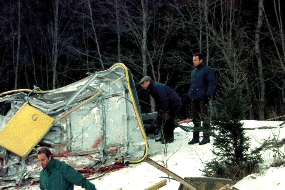 Una doppia scia di sangue lunga oltre trenta metri, vergata con violenza sulla neve candida: proprio come la frustata di un aereo che sfreccia a folle velocità sopra le case e gli alberi, facendo tremare la terra, nel cuore di una valle che era un presepe vivente e in un battito di ciglia è diventata un cimitero ai piedi delle montagne. La cabina di una funivia piena di sciatori che precipita nel vuoto da 108 metri, scivolata via da un cavo di acciaio reciso come per un colpo di forbici. In sette secondi, un tempo brevissimo ma dilatato all’infinito dal terrore e dalle grida disperate, si sfracella al suolo insieme a venti persone. Una catasta di lamiere gialle, il colore della cabina, sci, scarponi, giacche a vento, pezzi di vita schizzati ovunque e cadaveri aggrovigliati buttati alla rinfusa e senza pietà dallo schianto, diversi mutilati e irriconoscibili. Il colpo di forbici che ha tranciato la fune traente della funivia, l’alfa e l’omega della strage del Cermis, è opera di un Grumman Prowler EA-6B dell’Aeronautica militare statunitense, precisamente del corpo dei marines.