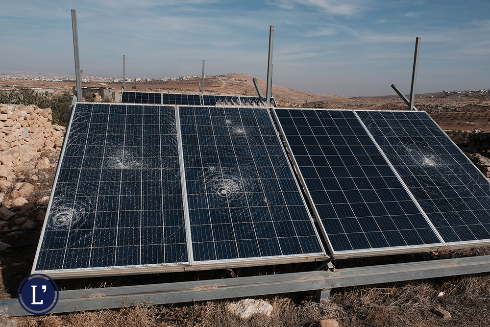Pochi giorni dopo, i coloni hanno danneggiato il sistema elettrico ed idrico che portava acqua luce a metà delle case del paese. Nemmeno un mese dopo l’omicidio, hanno iniziato la costruzione di un nuovo avamposto, rubando nuovi centinaia di metri quadrati alla comunità di Umm al-Khair. Oggi sono almeno sei le abitazioni israeliane protette da filo spinato e recinzioni presenti a meno di dieci metri dalle case palestinesi. In alto, sventolano varie stelle di David bianche e blu. Il villaggio palestinese è ora praticamente circondato dai coloni.