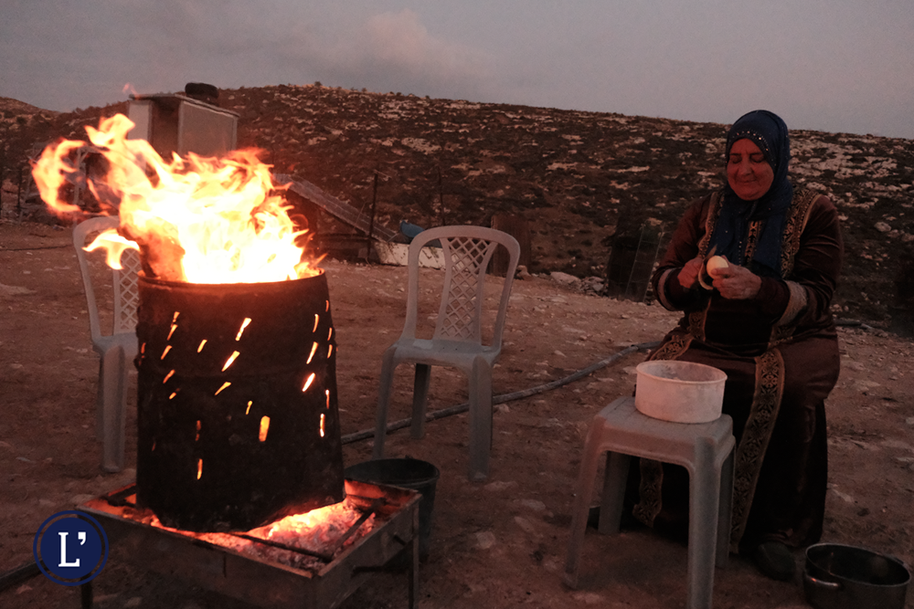 «I coloni vengono ogni giorno» racconta la padrona di casa, Fadda Abu Naim, 59 anni. «Ci rubano le pecore, ci minacciano, cercano di spaventarci. Vogliono mandarci via, così questa terra rimane a loro», dice a L’Indipendente. La sua famiglia vive lì da cinque anni. Dalla casa dove abitava prima, nella Valle del Giordano, erano stati mandati via dai militari, che avevano decretato che quell’area era una “zona vietata” ai civili. Per qualche mese si erano stanziati ad Al-Qaboun, ma poi avevano dovuto spostarsi nuovamente a causa della loro vicinanza a una colonia. Approdati a Turmus Ayya, dopo tre anni avevano deciso di trasferirsi ad al-Mughayyir a seguito dell’escalation delle aggressioni da parte dei coloni nel Paese.