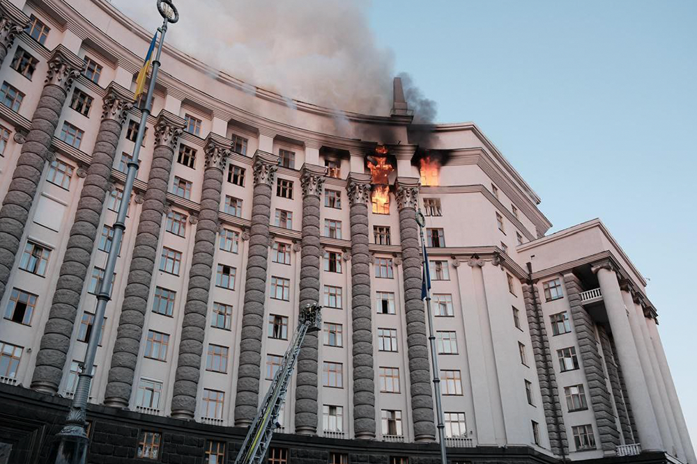 Ucraina: imponente attacco aereo russo, in fiamme il palazzo del governo