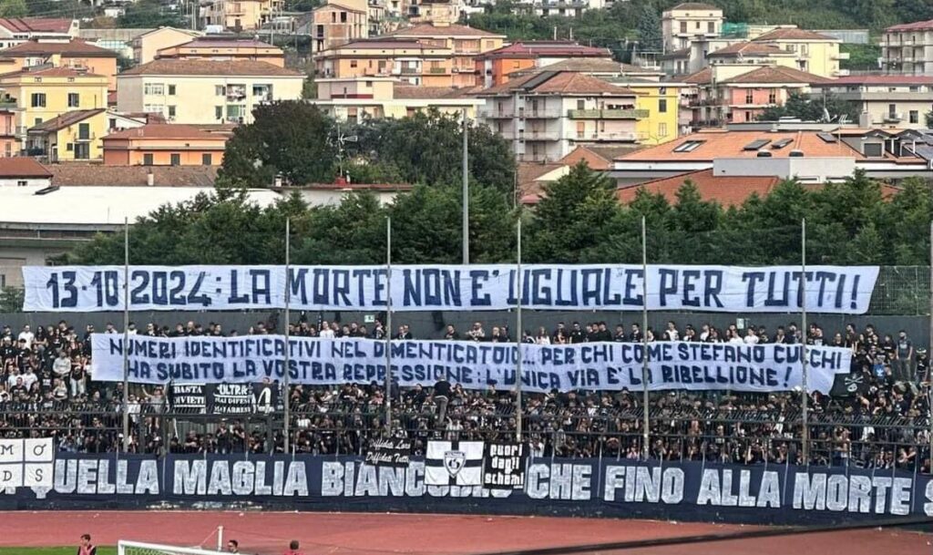 In occasione del match casalingo con il Potenza, gli ultrà della Cavese hanno lanciato dagli spalti un forte messaggio sociale, ricordando l’omicidio di Stefano Cucchi e sottolineando la necessità dei codici identificativi per le forze dell’ordine: «Numeri identificativi nel dimenticatoio… per chi come Stefano Cucchi ha subito la vostra repressione l’unica via è la ribellione!». L’azione […]