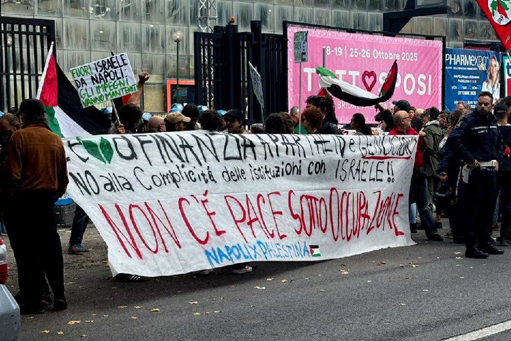 Tre attivisti sono stati arrestati dalla Polizia di Stato durante una protesta contro la multinazionale farmaceutica israeliana Teva, svoltasi sabato 25 ottobre all’interno del Pharmexpo, la fiera ospitata nella Mostra d’Oltremare di Fuorigrotta, a Napoli. La contestazione dei manifestanti, circa cinquanta, riuniti sotto le sigle della rete BDS, Rete Napoli per la Palestina e Centro […]