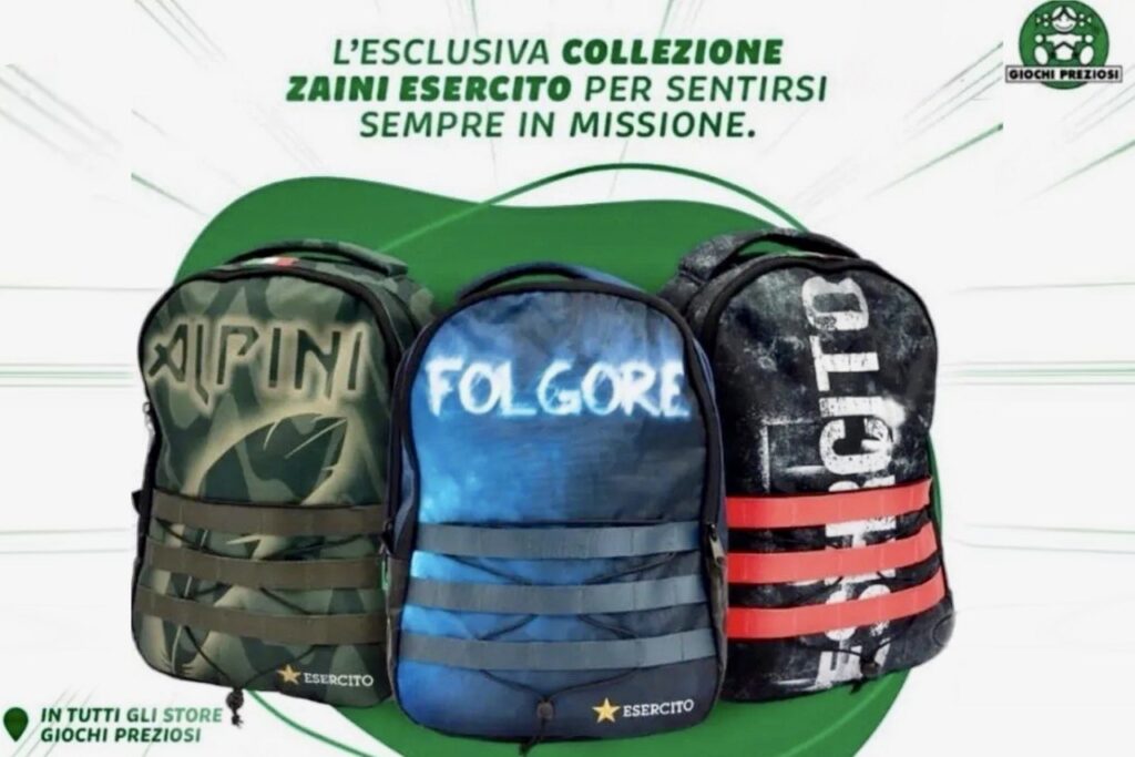 Zainetti griffati dall’Esercito: la militarizzazione dell’immaginario sbarca nelle scuole