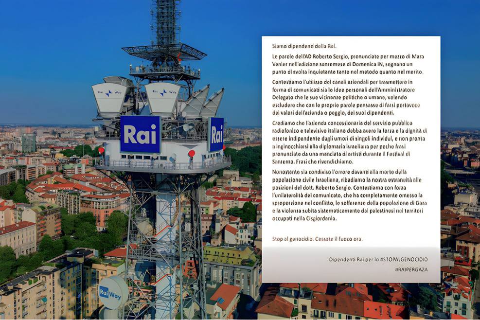 I dipendenti RAI prendono posizione contro i vertici: “Anche noi diciamo stop al genocidio”