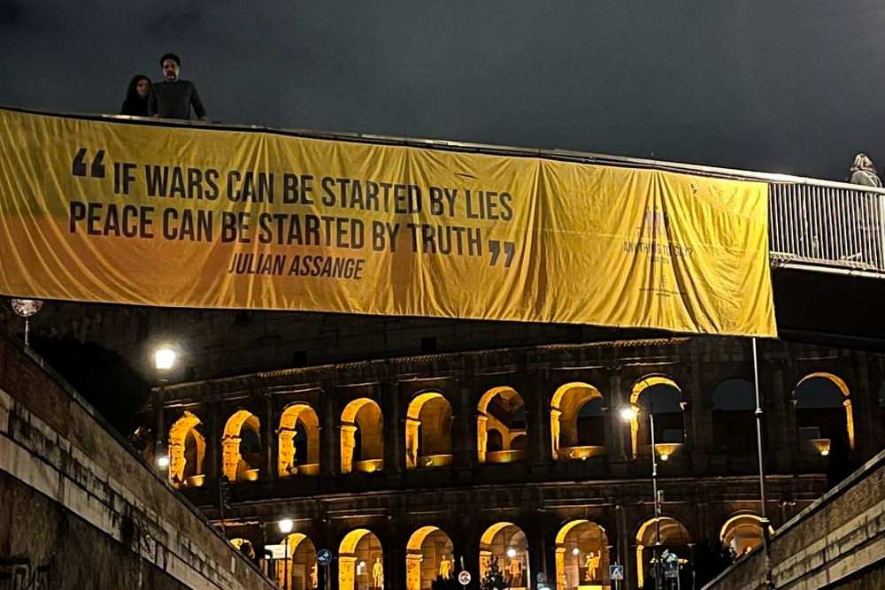 Mentre era in corso il bilaterale a Palazzo Chigi tra la presidente del Consiglio Giorgia Meloni e il presidente ucraino Volodymyr Zelensky, nella sera di ieri 9 gennaio, alcuni pacifisti romani hanno esibito davanti al Colosseo uno striscione con la celebre frase di Julian Assange, «Se le guerre possono essere avviate dalle bugie, allora possono […]
