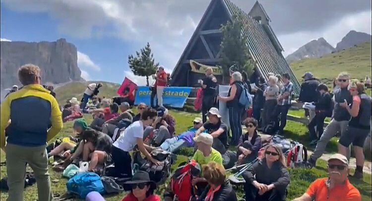 Giù le mani dalle Dolomiti: in centinaia manifestano contro l’impatto delle olimpiadi a Cortina